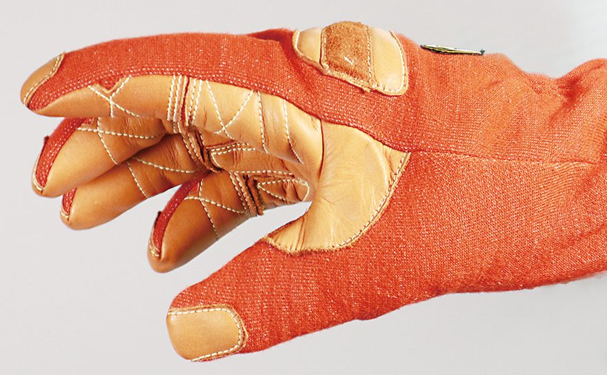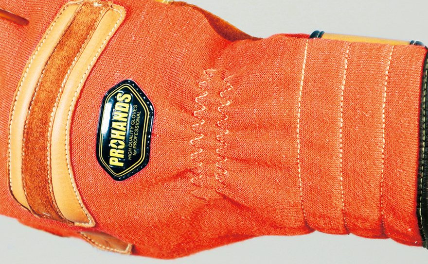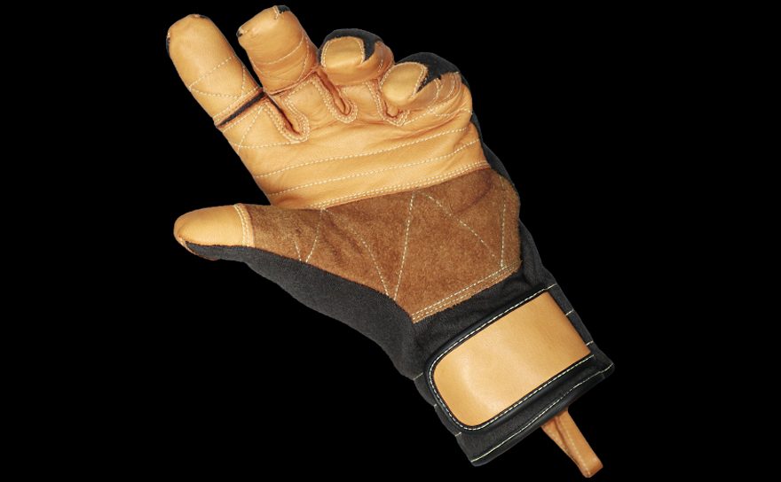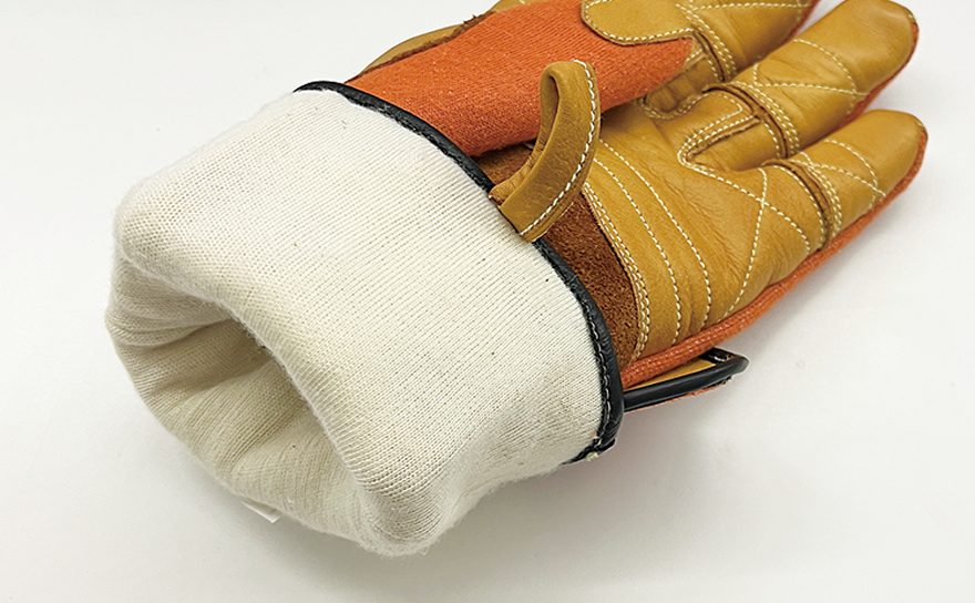 手掌部耐炎加工側補強+牛皮裏出し滑り止め対策。