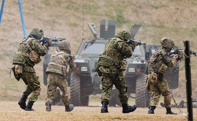 陸上自衛隊、海上自衛隊、航空自衛隊の様々なシーンで